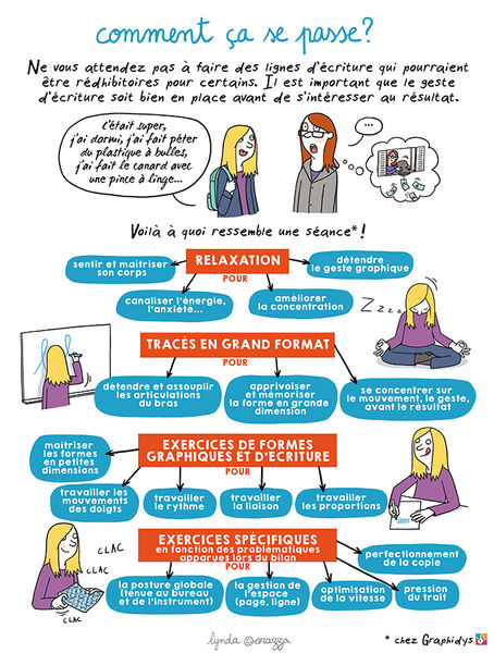 En photos ci-dessous, une petite BD explicative et humoristique sur la rééducation en graphothérapie.